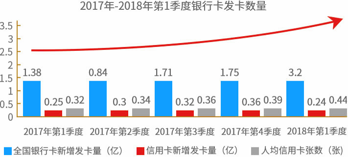 截止到2018年第一季度末,全国银行卡发卡总张数为70.13亿张,其中信用卡6.12亿张,人均持有信用卡的数量从0.32张上升到0.44张,从这点可以看出信用卡发卡量在大幅度提升。电商、教育、物流、连锁、银行、保险、通讯运营等各行各业急需pos机!